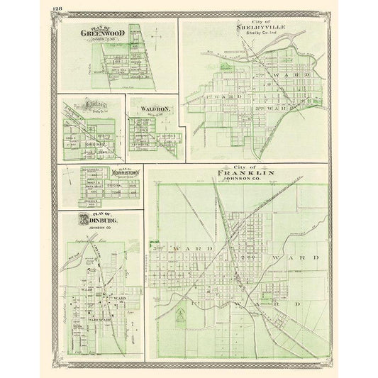 Franklin, Shelbyville, Greenwood, Edinburg Indiana Gold Ornate Wood Framed Art Print with Double Matting by Baskin