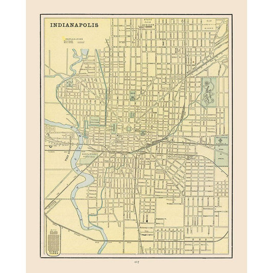 Indianapolis Indiana - Cram 1892 Gold Ornate Wood Framed Art Print with Double Matting by Cram