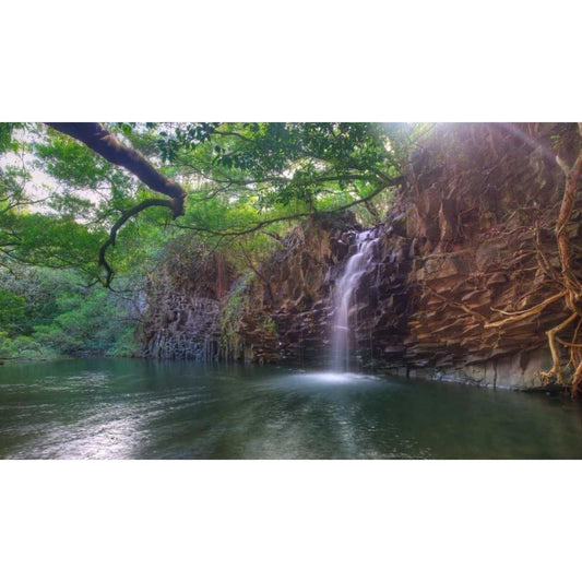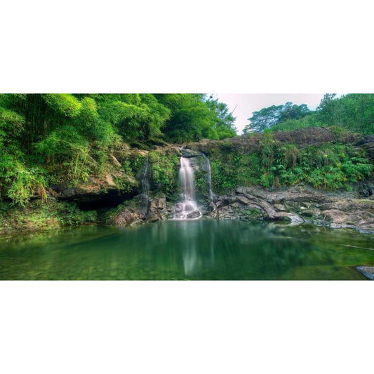 Maui Waterfall Gold Ornate Wood Framed Art Print with Double Matting by Bennion, Scott