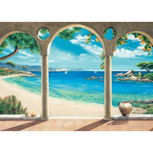 Mediterranean Bay Gold Ornate Wood Framed Art Print with Double Matting by Dominguez, Robert