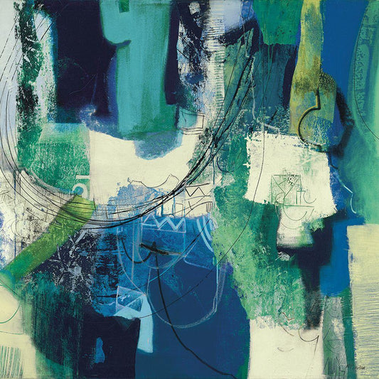 Aqua Movement Gold Ornate Wood Framed Art Print with Double Matting by Oppenheimer, Michelle