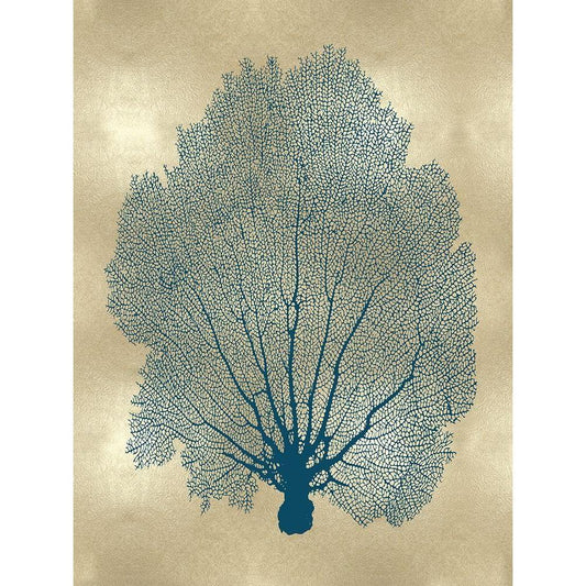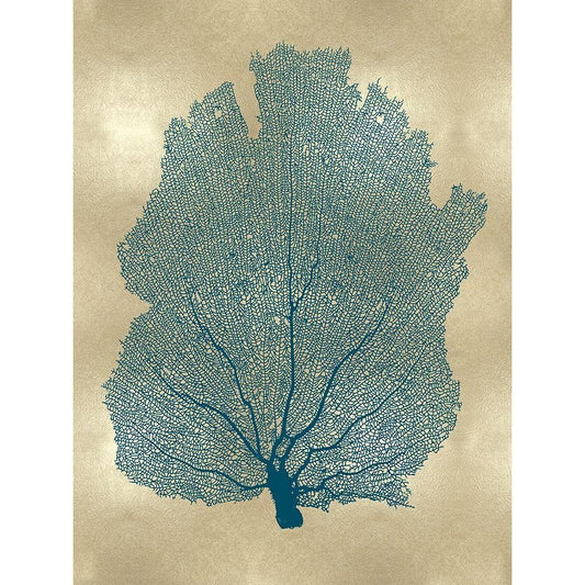 Sea Fan Teal on Gold I Gold Ornate Wood Framed Art Print with Double Matting by Miller, Melonie
