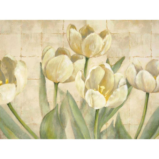 White Tulips on Ivory Gold Ornate Wood Framed Art Print with Double Matting by Mckee, Lauren