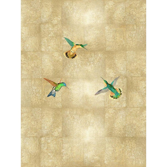Hummingbirds on Gold V Gold Ornate Wood Framed Art Print with Double Matting by Blake, Madeline