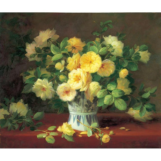 Yellow Flowers Gold Ornate Wood Framed Art Print with Double Matting by Fasani