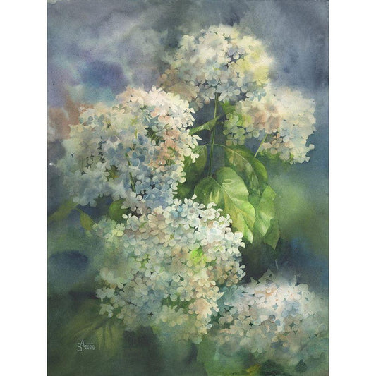 Solar Hydrangeas Gold Ornate Wood Framed Art Print with Double Matting by Besedina, Anastasiia