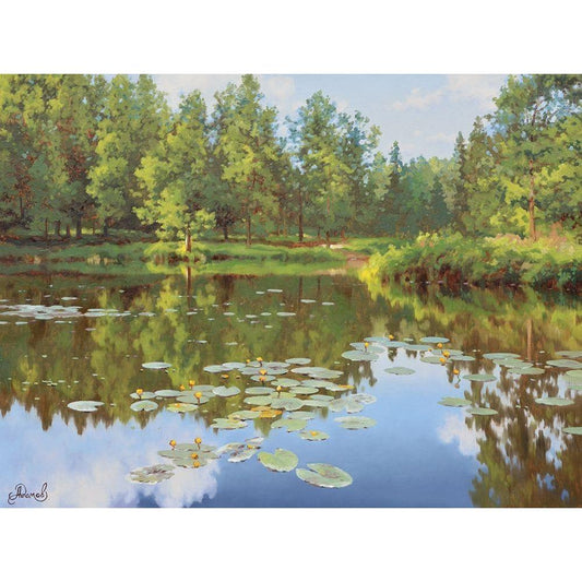 River Bank Gold Ornate Wood Framed Art Print with Double Matting by Chaney, Alan