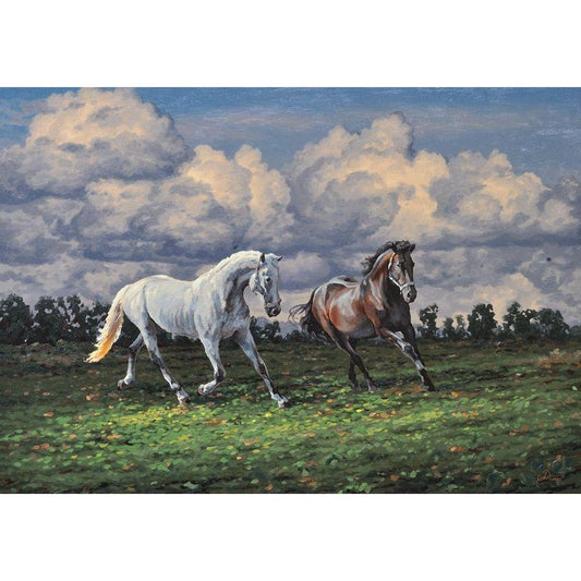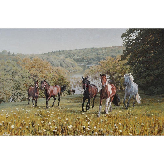 Horses after the Rain Gold Ornate Wood Framed Art Print with Double Matting by Adamov, Alexey