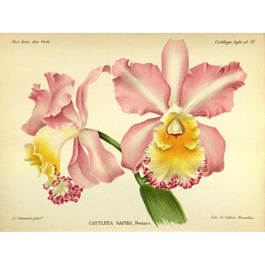Orchid, Cattleya Sapho Gold Ornate Wood Framed Art Print with Double Matting by Goossens, A.