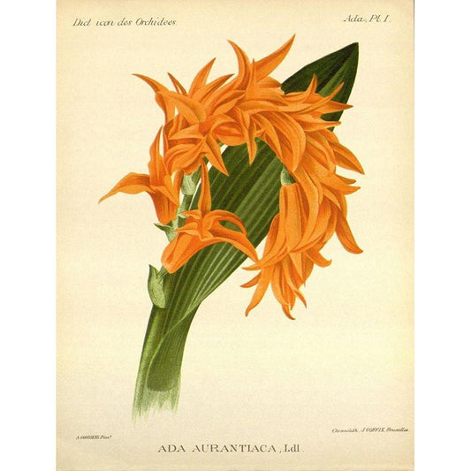 Orchid, Ada Aurantiaca Gold Ornate Wood Framed Art Print with Double Matting by Goossens, A.