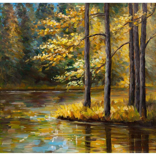 Fall Trees at the Waters Edge Gold Ornate Wood Framed Art Print with Double Matting by Atelier B Art Studio