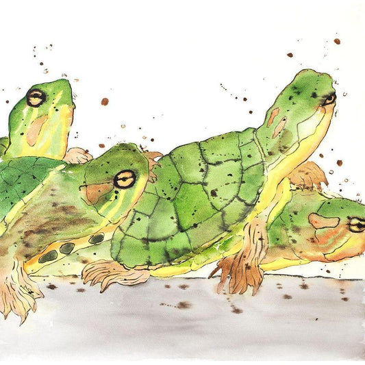 SMALL AQUATIC TURTLES Gold Ornate Wood Framed Art Print with Double Matting by Atelier B Art Studio
