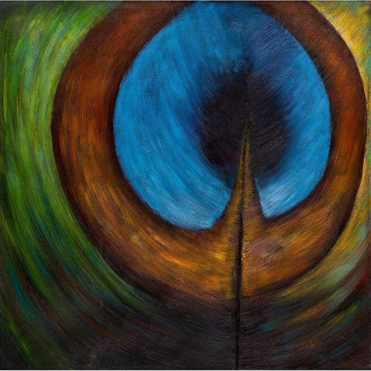 PEACOCK FEATHER CENTER Gold Ornate Wood Framed Art Print with Double Matting by Atelier B Art Studio