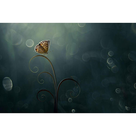 Butterfly In The Morning With Bokeh Gold Ornate Wood Framed Art Print with Double Matting by Pamungkas, Edy