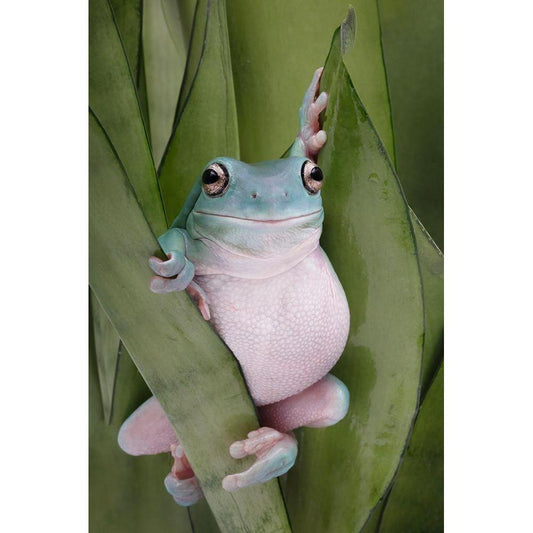 A Whites Tree Frogs Pose Gold Ornate Wood Framed Art Print with Double Matting by D Lester, Linda