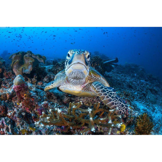 Face To Face With A Green Turtle Gold Ornate Wood Framed Art Print with Double Matting by Gabriel, Barathieu
