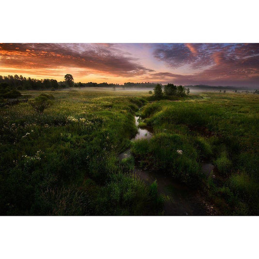 Morning On Kesma River Gold Ornate Wood Framed Art Print with Double Matting by Volkov, Kirill