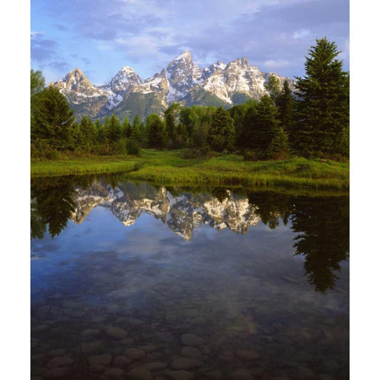 Wyoming Grand Tetons reflect in the Snake River Gold Ornate Wood Framed Art Print with Double Matting by Talbot Frank, Christopher
