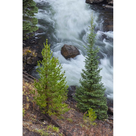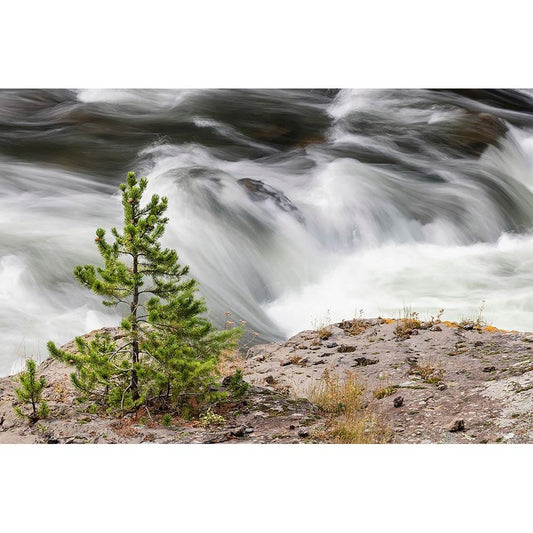 Small evergreen tree along Firehole River-Yellowstone National Park-Wyoming Gold Ornate Wood Framed Art Print with Double Matting by Jones, Adam