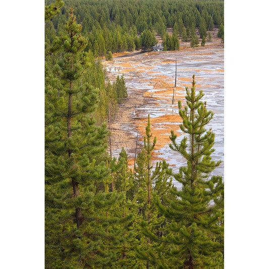 Elevated view of runoff water and bacterial mat-Grand Prismatic spring Gold Ornate Wood Framed Art Print with Double Matting by Jones, Adam