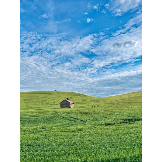 USA-Washington State-Small barn and tracks in wheat field Gold Ornate Wood Framed Art Print with Double Matting by Eggers, Terry