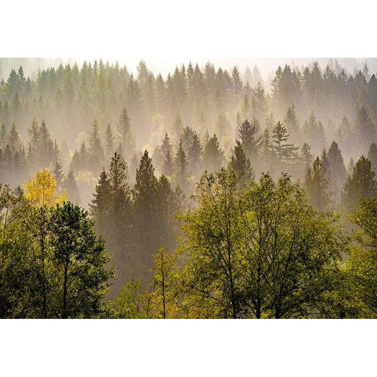 USA-Washington State-Preston Evergreens and Cottonwood trees lifting fog on hillside Gold Ornate Wood Framed Art Print with Double Matting by Gulin, Sylvia