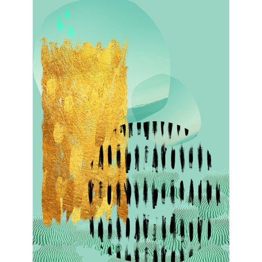Scandi Abstract Mint Gold Gold Ornate Wood Framed Art Print with Double Matting by Urban Epiphany