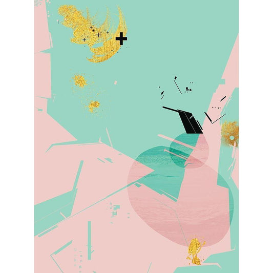 Scandi Abstract Mint Pink Gold Ornate Wood Framed Art Print with Double Matting by Urban Epiphany