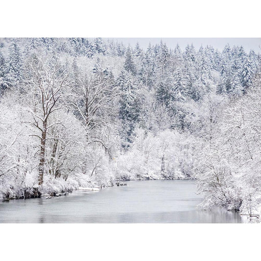 Washington State-Fall City and the Snoqualmie river with winter fresh snow fall Gold Ornate Wood Framed Art Print with Double Matting by Gulin, Sylvia