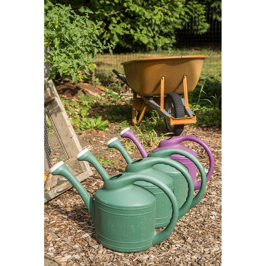 Issaquah-Washington State-USA Row of plastic watering cans for hand-watering a garden Gold Ornate Wood Framed Art Print with Double Matting by Horton, Janet