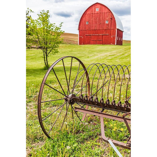 Albion-Washington State-USA-Red barns and antique farm equipment in the Palouse hills Gold Ornate Wood Framed Art Print with Double Matting by Wilson, Emily M.
