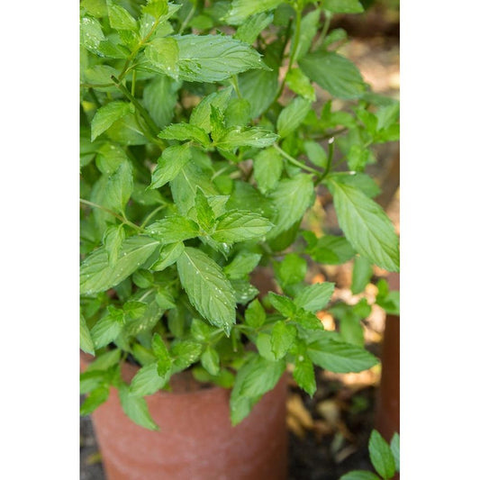 Bellevue-Washington State-USA Spearmint growing in a clay pot Gold Ornate Wood Framed Art Print with Double Matting by Horton, Janet