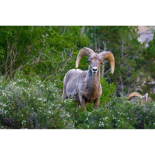 Big horn ram portrait in wildflowers-Dinosaur National Monument-Utah-USA Gold Ornate Wood Framed Art Print with Double Matting by Garber, Howie