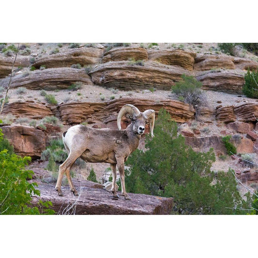Big horn ram on cliff-Dinosaur National Monument-Utah-USA Gold Ornate Wood Framed Art Print with Double Matting by Garber, Howie