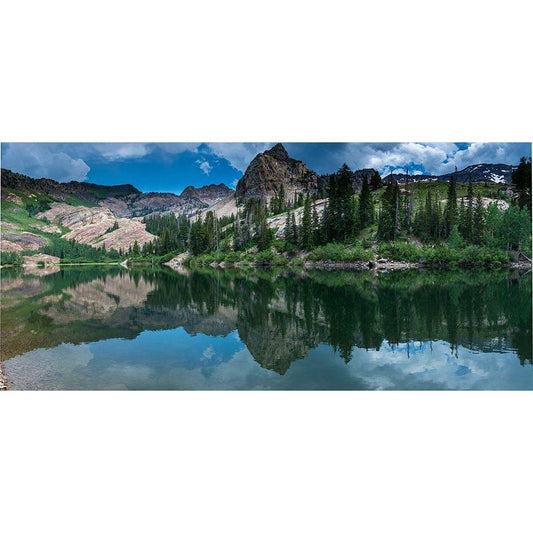 Panoramic landscape of Sundial Peak-Lake Blanche and reflection-Wasatch Mountains Gold Ornate Wood Framed Art Print with Double Matting by Garber, Howie