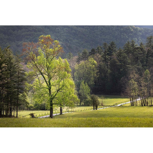 Loop road through Cades Cove passing beneath trees-Great Smoky Mountains National Park Gold Ornate Wood Framed Art Print with Double Matting by Jones, Adam