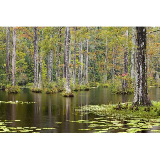 South Carolina Lily pads in cypress swamp Gold Ornate Wood Framed Art Print with Double Matting by Paulson, Don