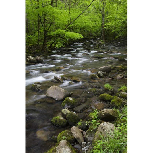 Spring view of forest along Middle Prong of Little Pigeon River-Great Smoky Mountains National Park Gold Ornate Wood Framed Art Print with Double Matting by Jones, Adam