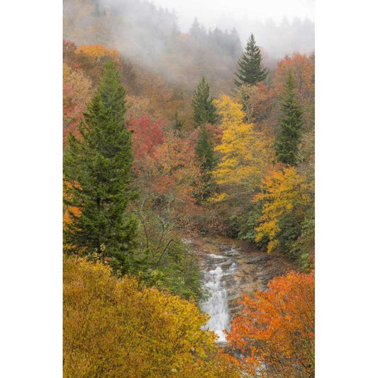 North Carolina, Bubbling Springs Falls in Autumn Gold Ornate Wood Framed Art Print with Double Matting by Paulson, Don