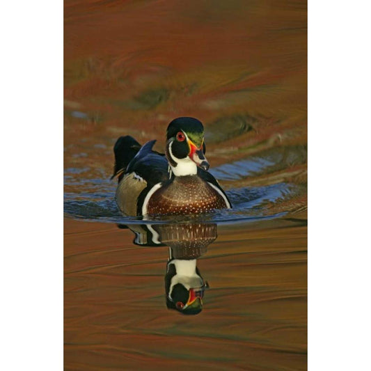 Male wood duck and reflection-Ohio Gold Ornate Wood Framed Art Print with Double Matting by Jones, Adam