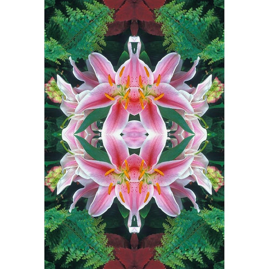 Flipped and reflected Stargazer Lilies-Cincinnati-Ohio Gold Ornate Wood Framed Art Print with Double Matting by Jones, Adam