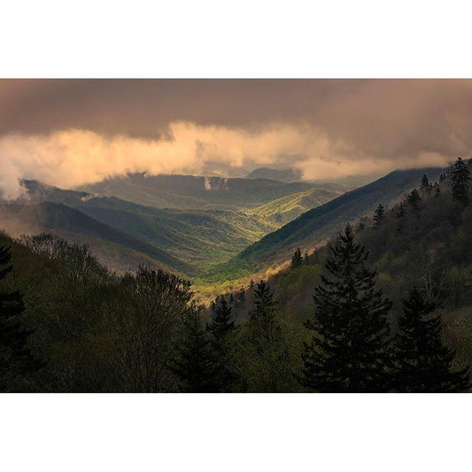 Sunrise view of Oconaluftee Valley-Great Smoky Mountains National Park-North Carolina Gold Ornate Wood Framed Art Print with Double Matting by Jones, Adam