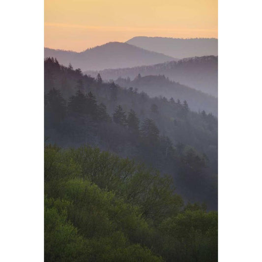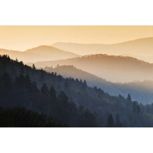 First light morning on early spring trees-Oconaluftee Valley-Great Smoky Mountains National Park Gold Ornate Wood Framed Art Print with Double Matting by Jones, Adam