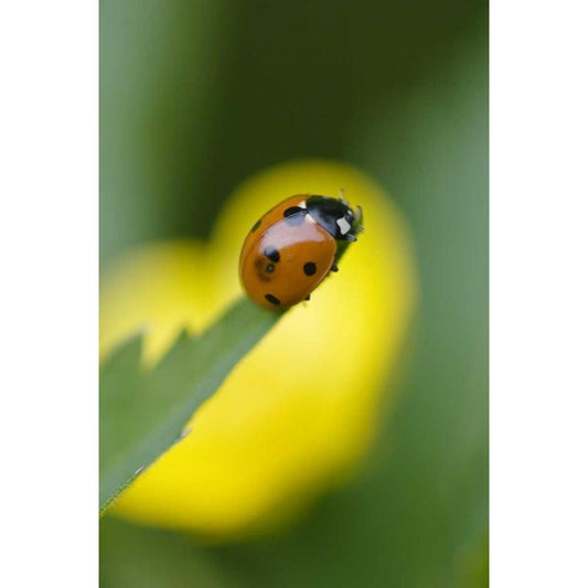 USA, North Carolina, Ladybug on tip of leaf Gold Ornate Wood Framed Art Print with Double Matting by Rotenberg, Nancy
