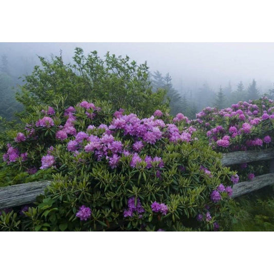 NC, Roan Mt Catawba rhododendrons along fence Gold Ornate Wood Framed Art Print with Double Matting by Rotenberg, Nancy