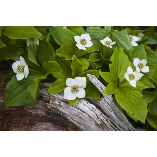 Maine, Acadia NP Bunchberry plant on log Gold Ornate Wood Framed Art Print with Double Matting by Rotenberg, Nancy