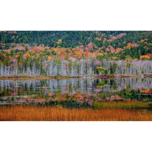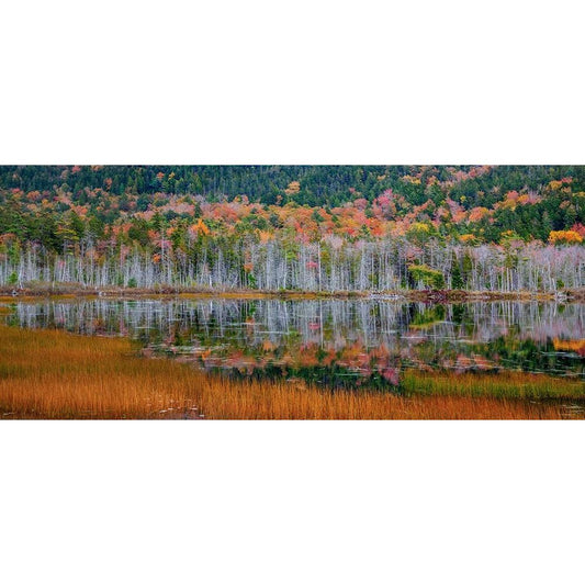 USA-New England-Maine-Mt-Desert Island-Acadia National Park with small lake with hillsides in Autum Gold Ornate Wood Framed Art Print with Double Matting by Gulin, Sylvia