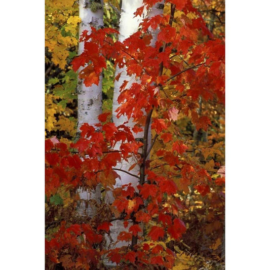 MI, White paper birch with maple trees in Autumn Gold Ornate Wood Framed Art Print with Double Matting by Carlson, Mark