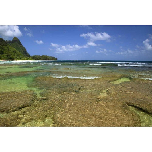 HI, Kauai Bali Hai seen from Tunnels Beach Gold Ornate Wood Framed Art Print with Double Matting by Flaherty, Dennis