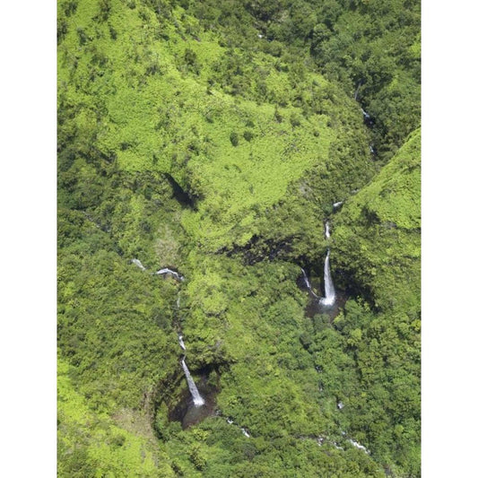 USA, Hawaii, Kauai Aerial view of waterfalls Gold Ornate Wood Framed Art Print with Double Matting by Flaherty, Dennis